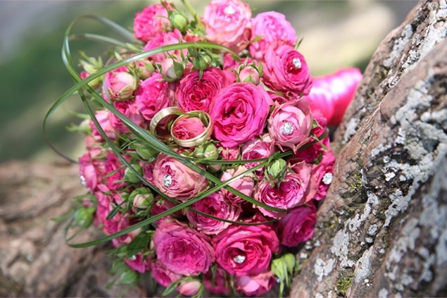 Traditionell wählt Dein Bräutigam den Brautstrauß aus,