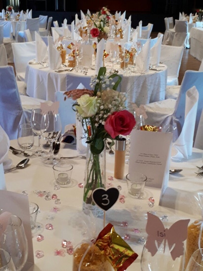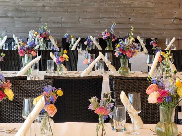 Die Tischgestecke sollten auch immer zur Tischform passen.
