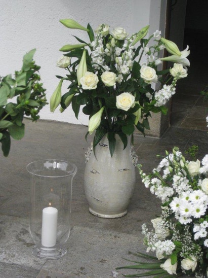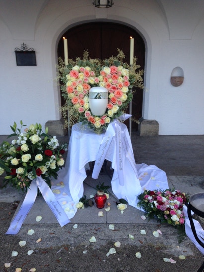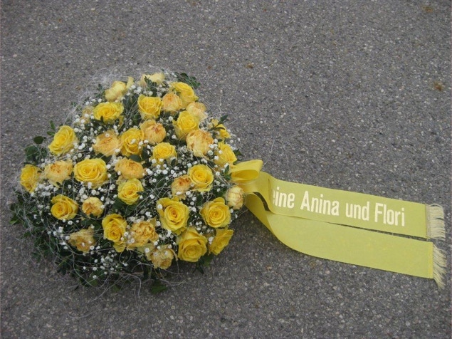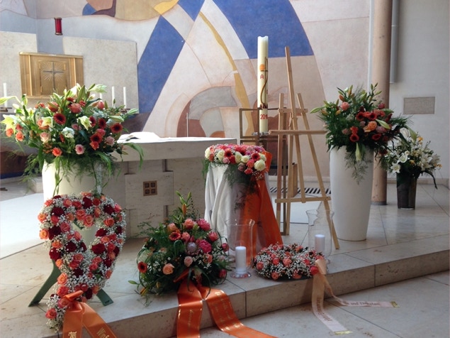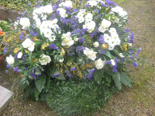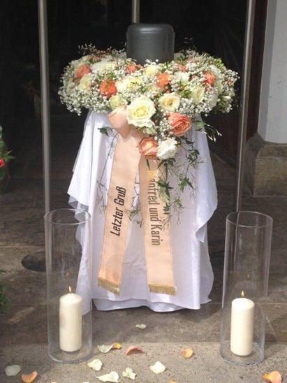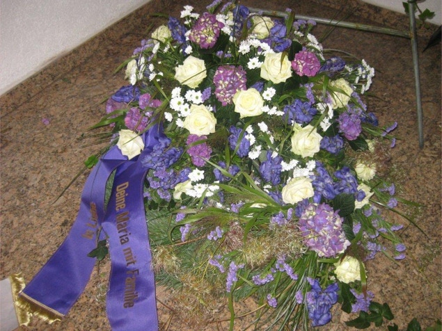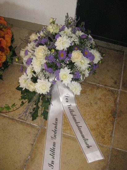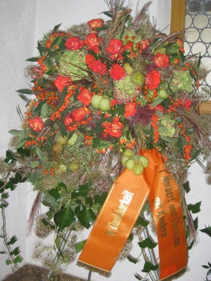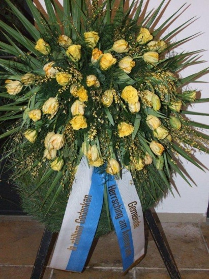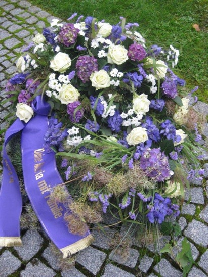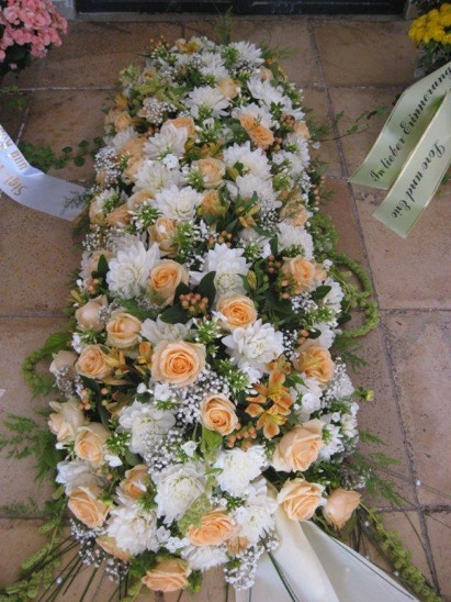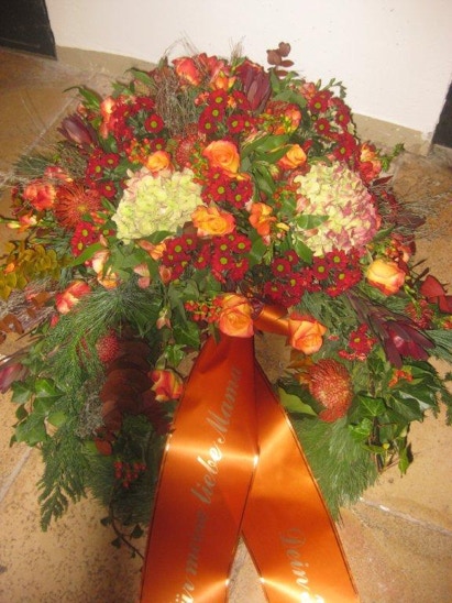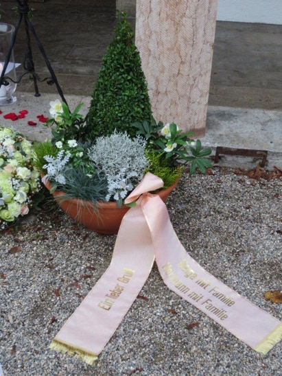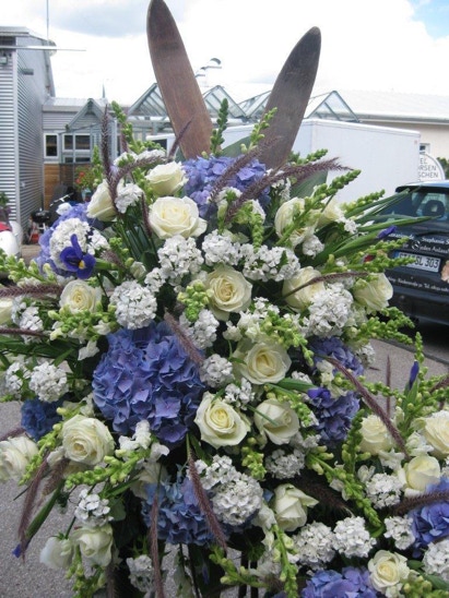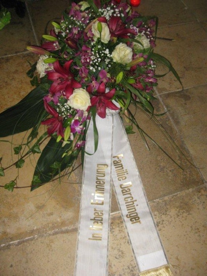 sowie Sargschmuck und Blumendekorationsgestecke für Trauerfeiern.