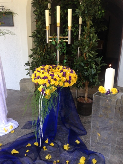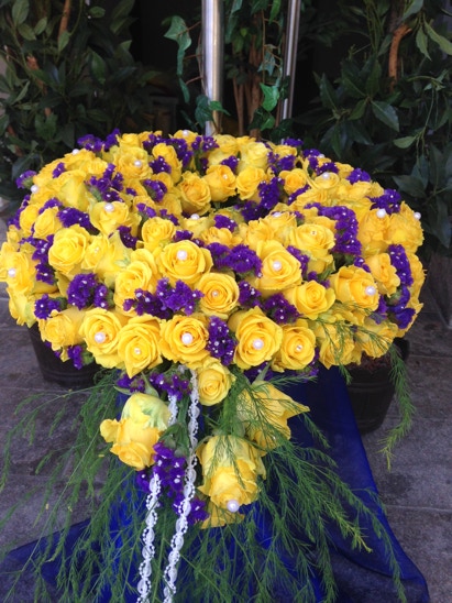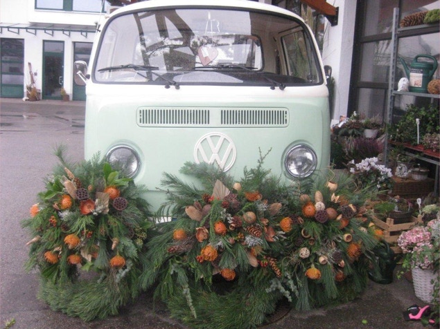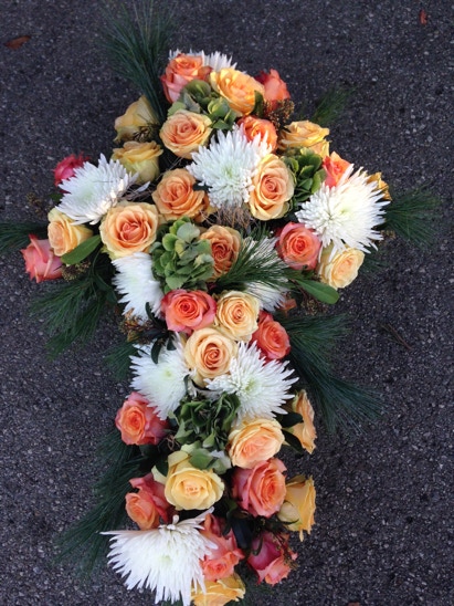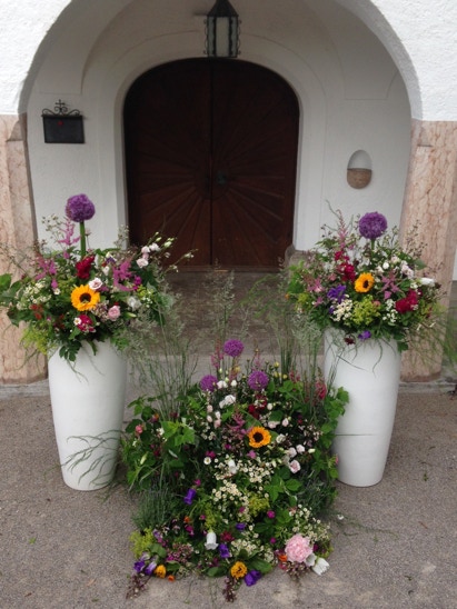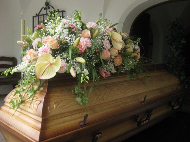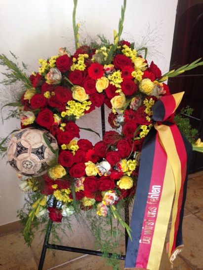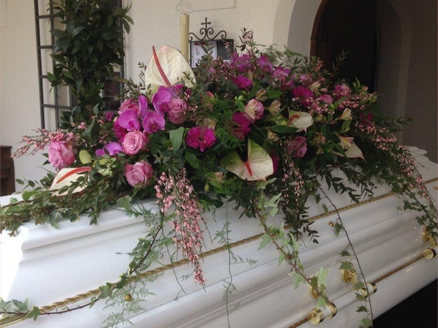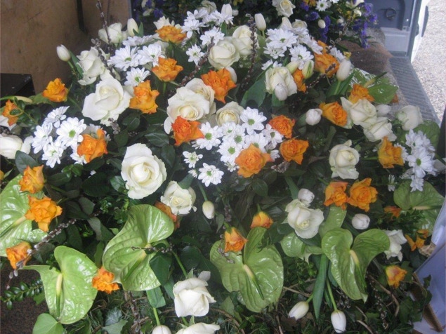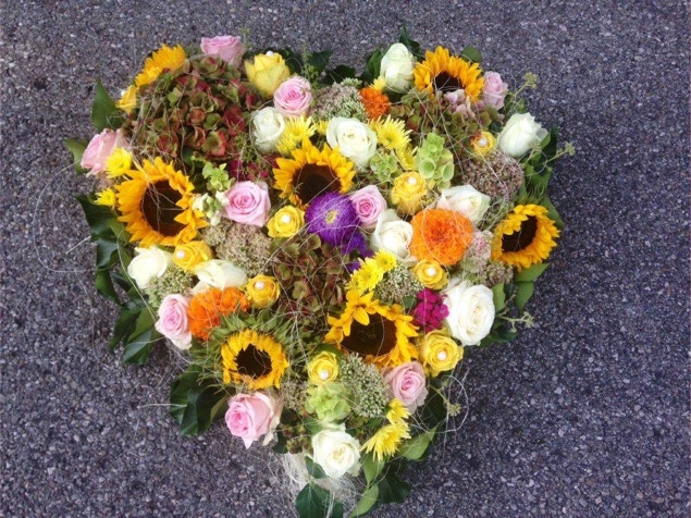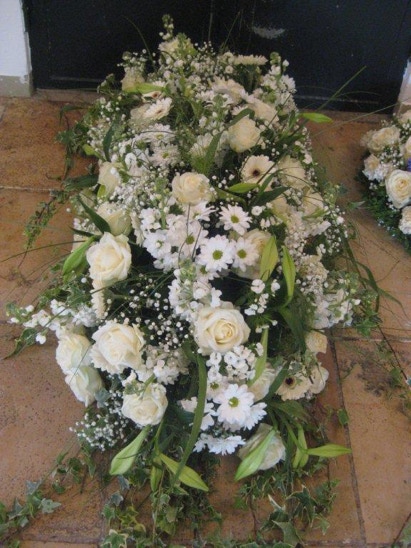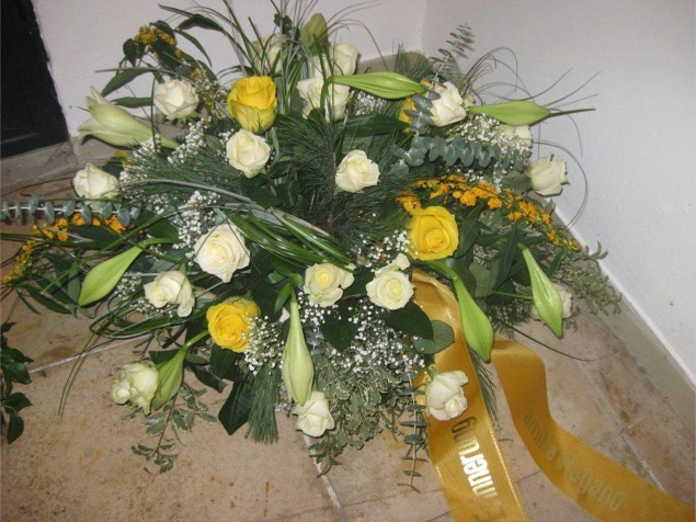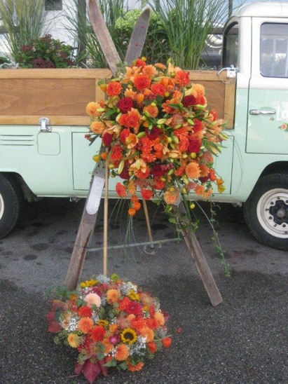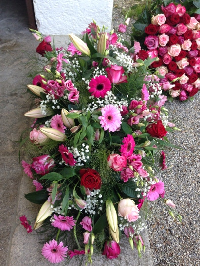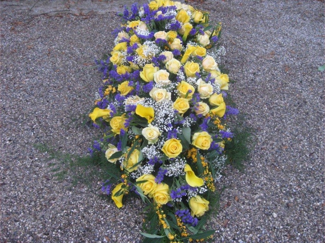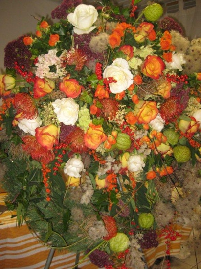 sowie Sargschmuck und Blumendekorationsgestecke für Trauerfeiern.
